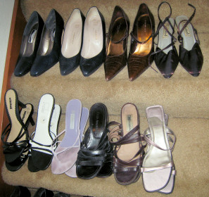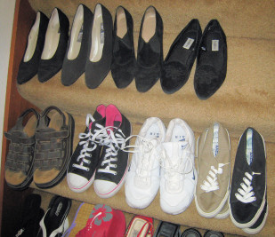 As Oliver might have said if he were a shoe-lover like me: Shoes, glorious shoes! I have about 100 pairs of shoes. Yes, 100. One hundred shoes is, I must say, too many to actually find and wear given our family size and the size of our house. Our house is average-sized (1800 square feet). Well, average sized 20 years ago, according to the